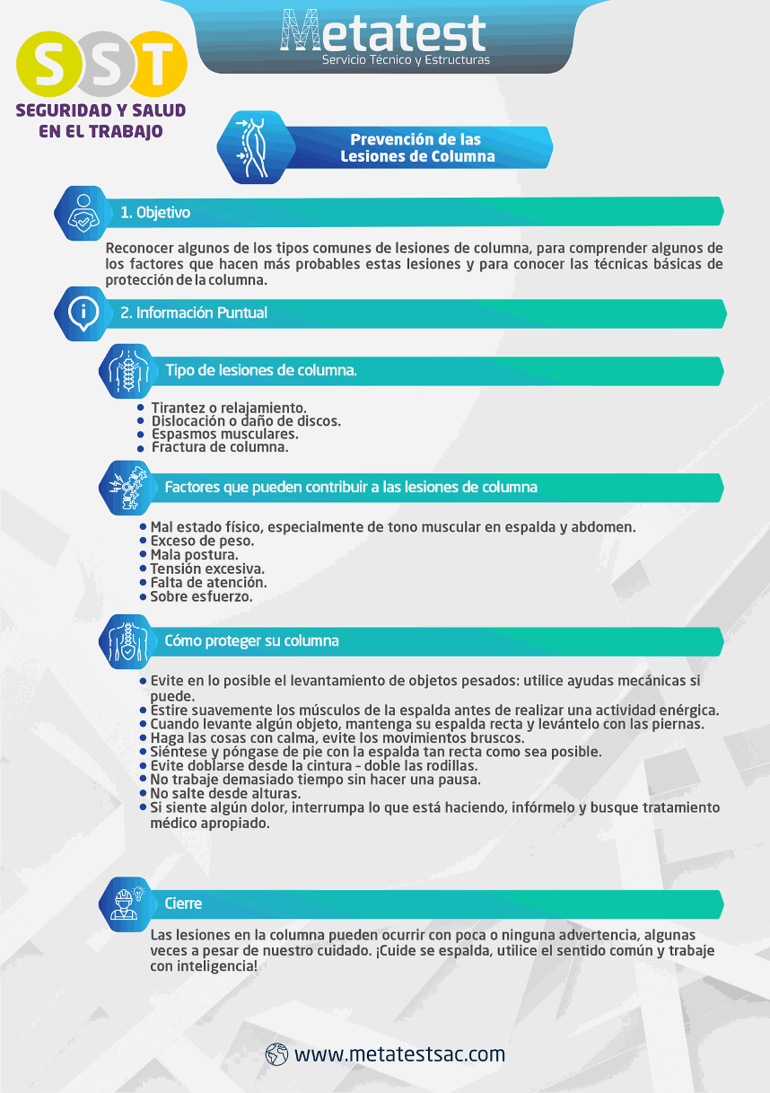 Las lesiones en la columna pueden ocurrir con poca o ninguna advertencia, algunas veces a pesar de nuestro cuidado. ¡Cuidese la espalda, utilice el sentido común y trabaje con inteligencia!